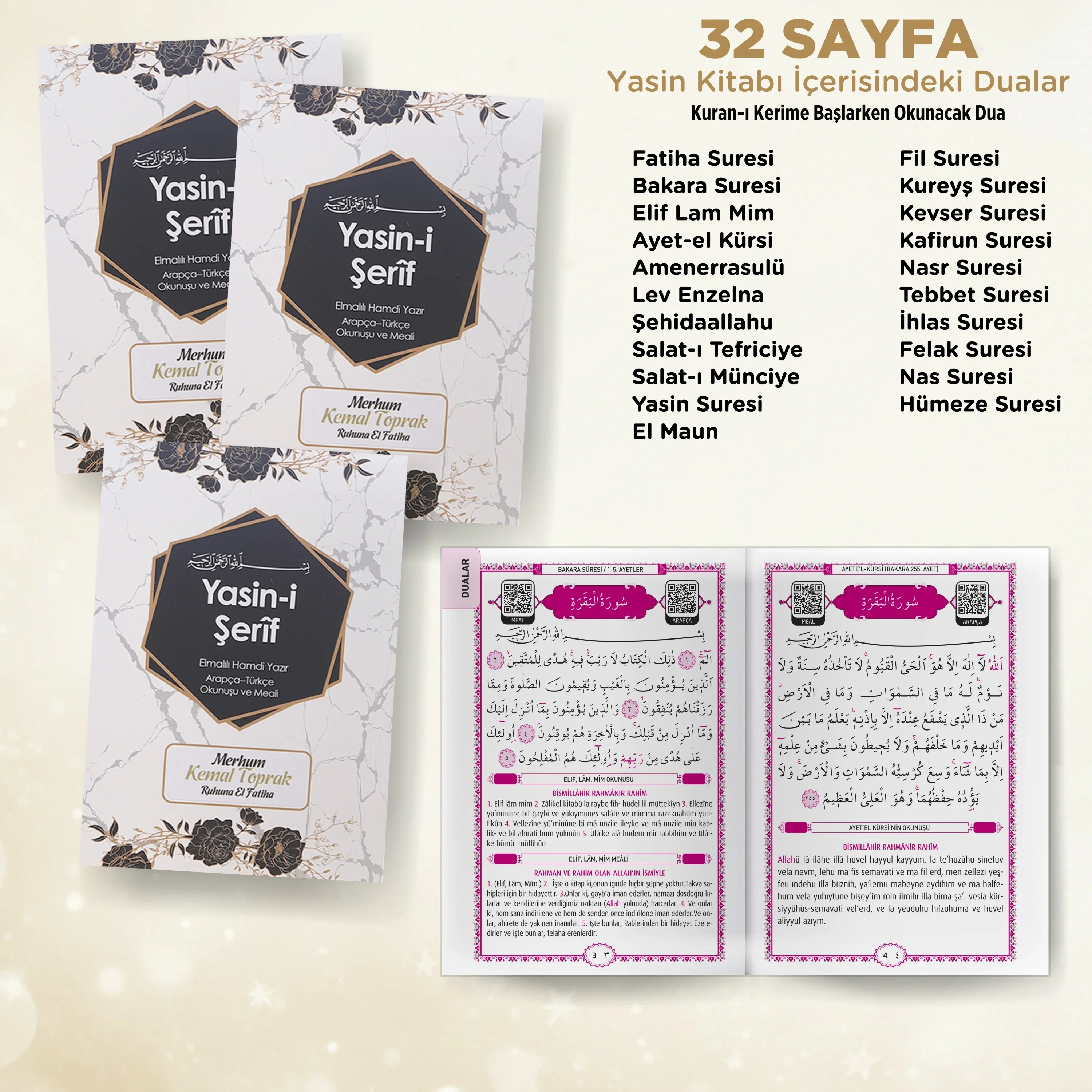 Siparişinizi oluştururken lütfen "isme özel metin" alanını doldurunuz. Yasin Kitabı istediğiniz metin ile kişiselleştirilebilir.