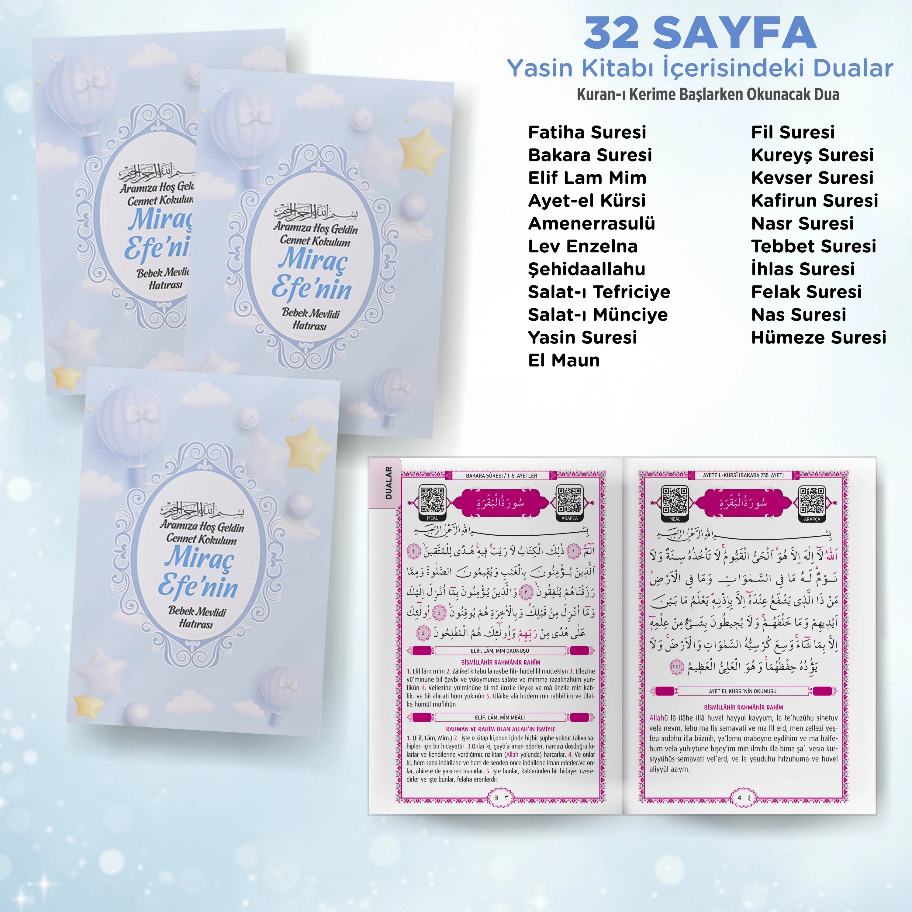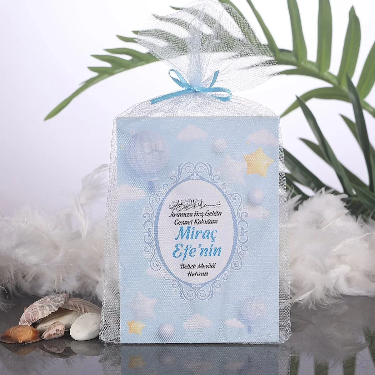 Erkek Bebek Mevlütleri için ideal olan bu set, yeni doğan bebekleri olan aileler tarafından sıkça tercih edilir. Balon Model Mavi Renkli Tül Kese içindeki Yasin Kitabı, içeriğindeki anlam dolu dualar ile sevdiklerinizin dua anlarını daha özel kılar.