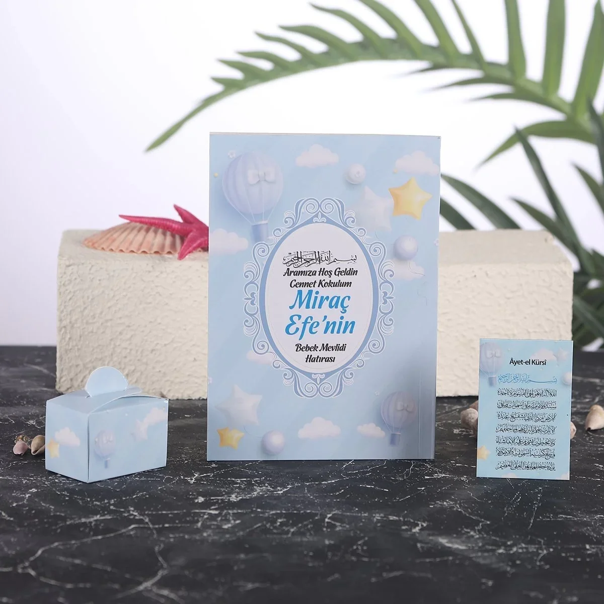 Erkek Bebek Mevlütleri için özel olarak tasarlanan bu set, yeni doğan bebekleri olan aileler tarafından sıkça tercih edilir. Balon Model Mavi Renkli Yasin Kitabı, Lokum Kutusu ve Magnet içindeki her bir öğe, içeriğindeki anlam dolu dualar ve özel detaylar ile öne çıkar.