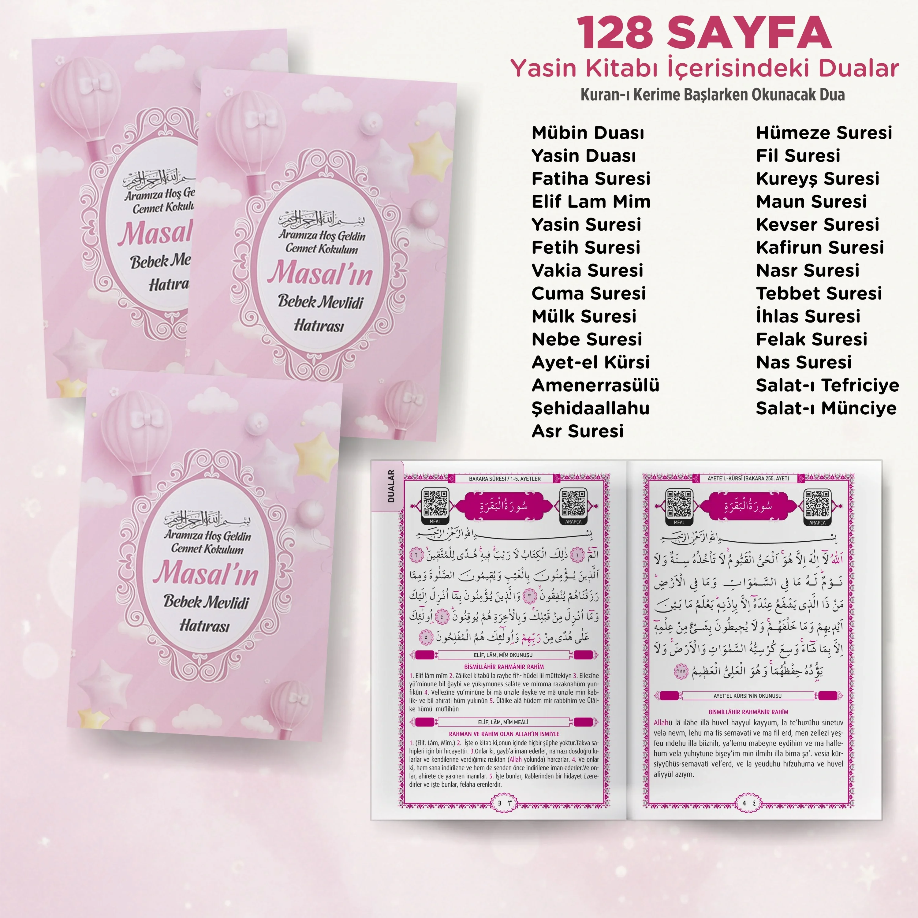 Balon Model Pembe Renkli Yasin Kitabı, Lokum Kutusu, Magnet, Karton Çanta ve Tesbih Seti