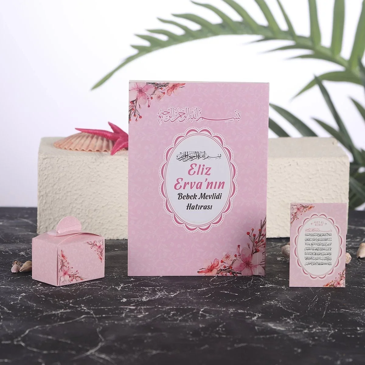 Çiçek Model Pembe Renkli Yasin Kitabı, Lokum Kutusu ve Magnet - Mevlüt Hediyelikleri