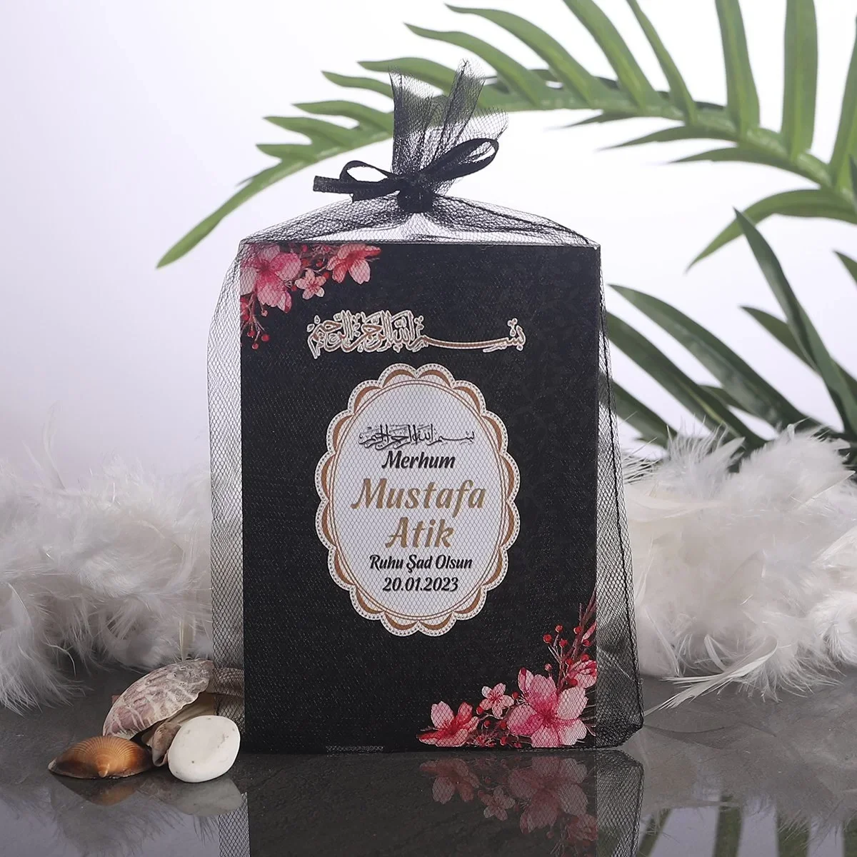 Çiçek Model Siyah Renkli Tül Kese İçerisinde Yasin Kitabı ile mevlütlerinizde en şık ve kaliteli mevlüt hediyelikleri dağıtın. Aynı gün kargo imkanı, kapıda ödeme seçeneği, ücretsiz iade ve değişim kolaylığı.