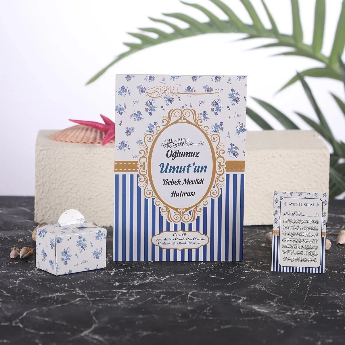 Çizgi Model Lacivert Renkli Yasin Kitabı, Lokum Kutusu ve Magnet - Mevlüt Hediyelikleri
