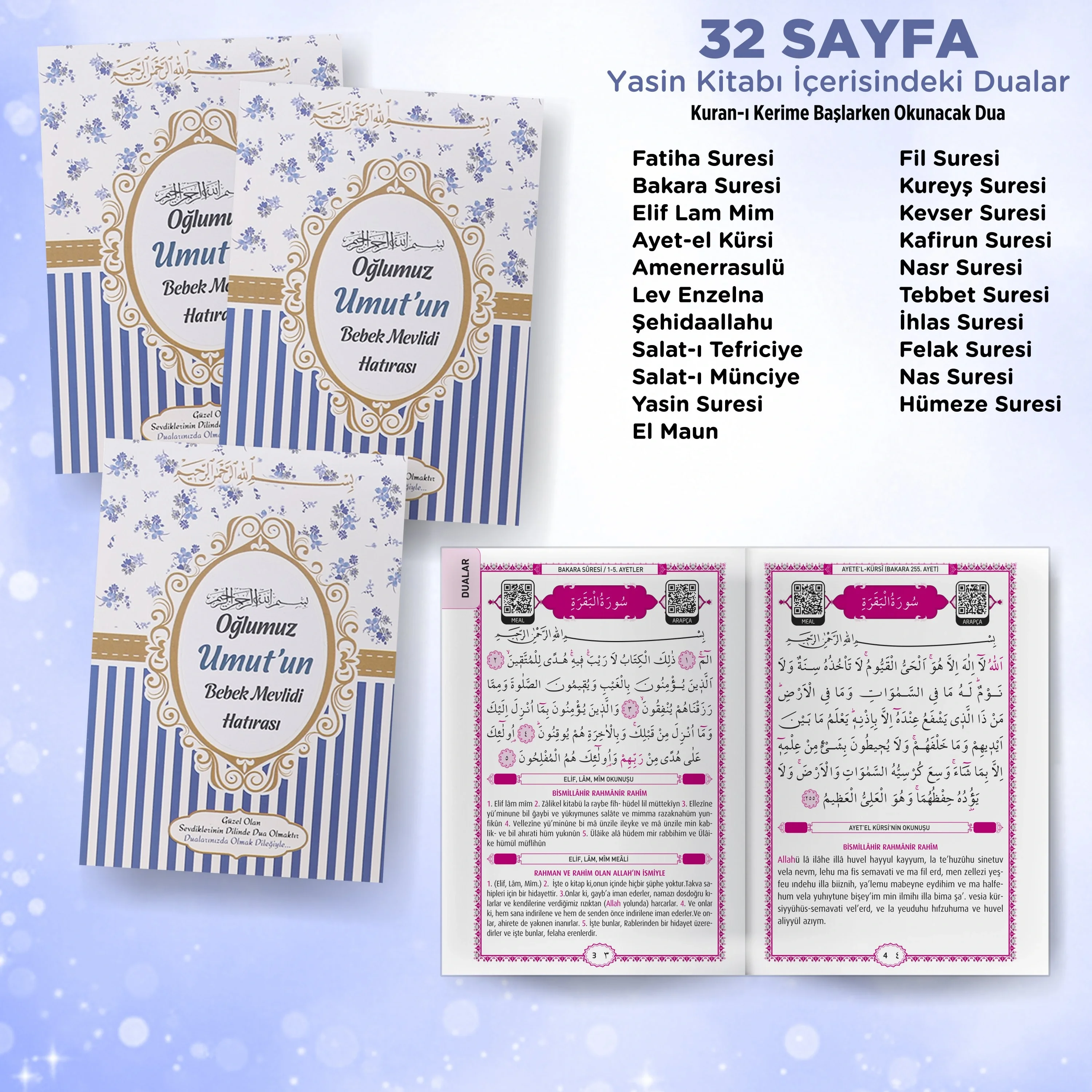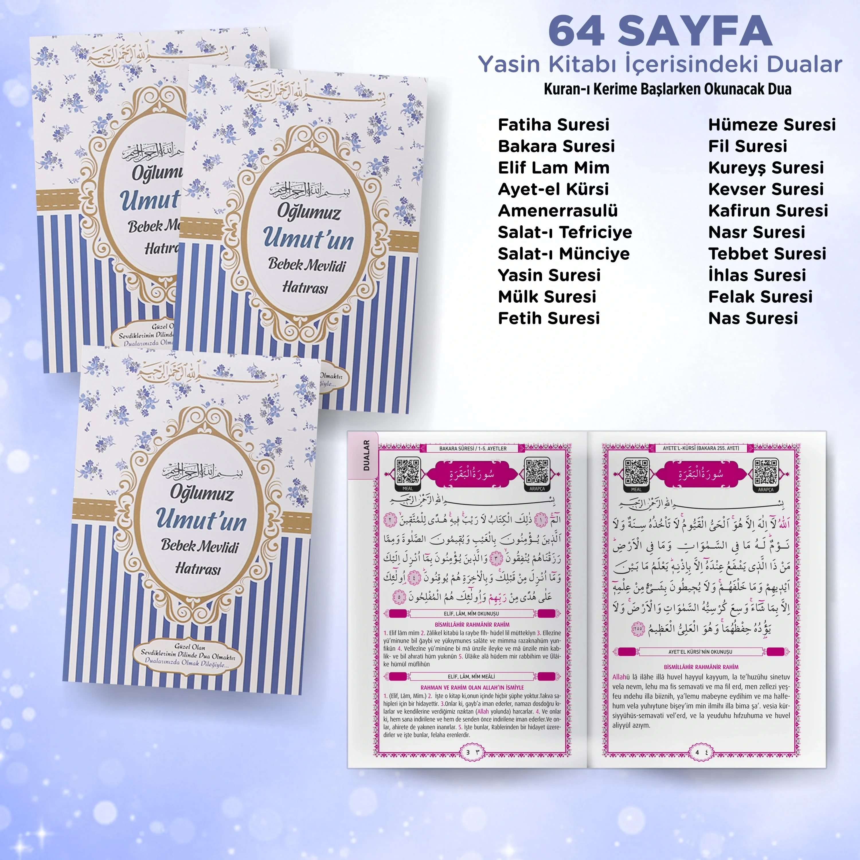 Yasin Kitabı, Lokum Kutusu ve Magnet içindeki her bir öğe, içeriğindeki anlam dolu dualar ve özel detaylar ile öne çıkar. Lokum Kutusu, içinde lezzetli ikramlarınızı saklamak ve paylaşmak için ideal bir seçenek sunar. Magnet, metal yüzeylere kolayca yapışabilen özel bir süs olarak kullanılabilir.