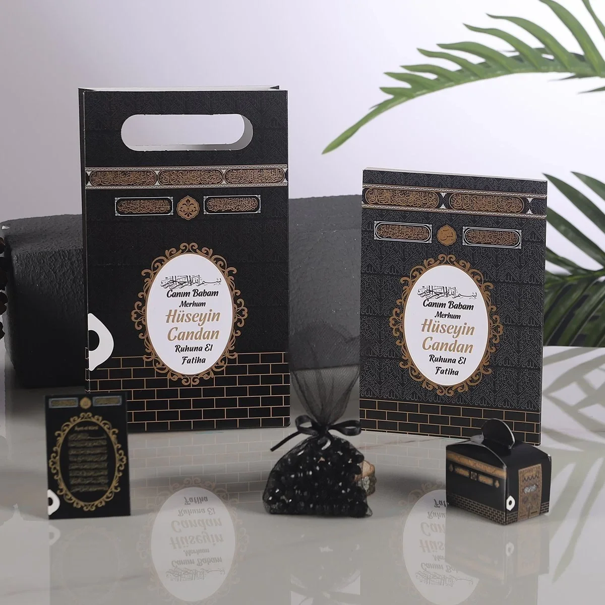 Kabe Model Siyah Renkli Yasin Kitabı, Lokum Kutusu, Magnet, Karton Çanta ve Tesbih - Mevlüt Hediyelikleri
