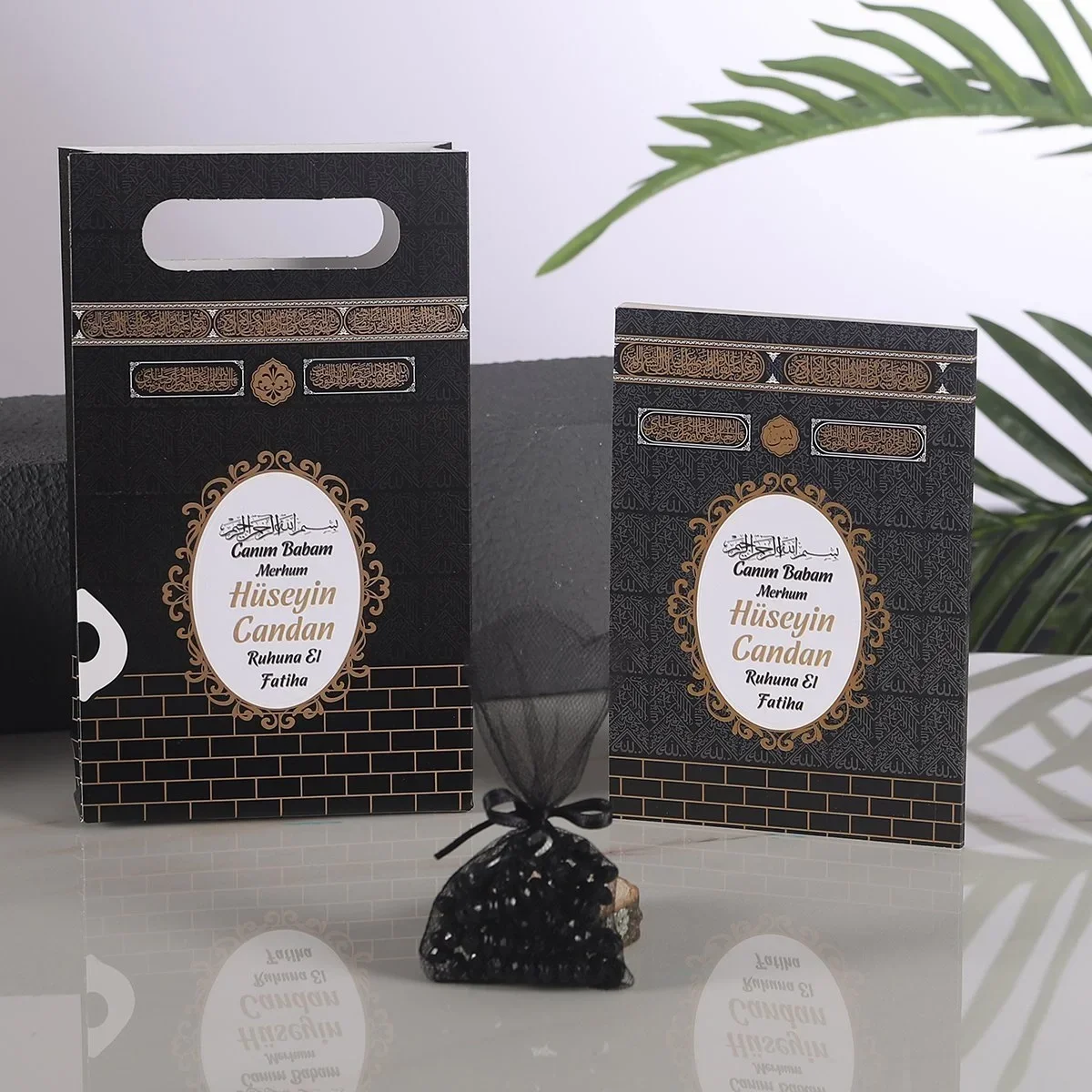 Kabe Model Siyah Renkli Yasin Kitabı, Karton Çanta ve Tesbih - Mevlüt Hediyelikleri