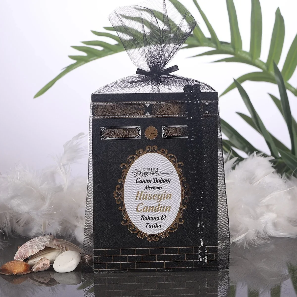 Kabe Model Siyah Renkli Tül Kese İçerisinde Yasin Kitabı ve Tesbih Seti, cenaze mevlütleri, hac ve umre dönemleri gibi özel ibadet anlarında kullanılmak üzere tasarlanmıştır. Bu özel set, sevdiklerinizin manevi anlamını güçlendirmek ve onlara anlamlı bir hediye vermek için ideal bir tercihtir.