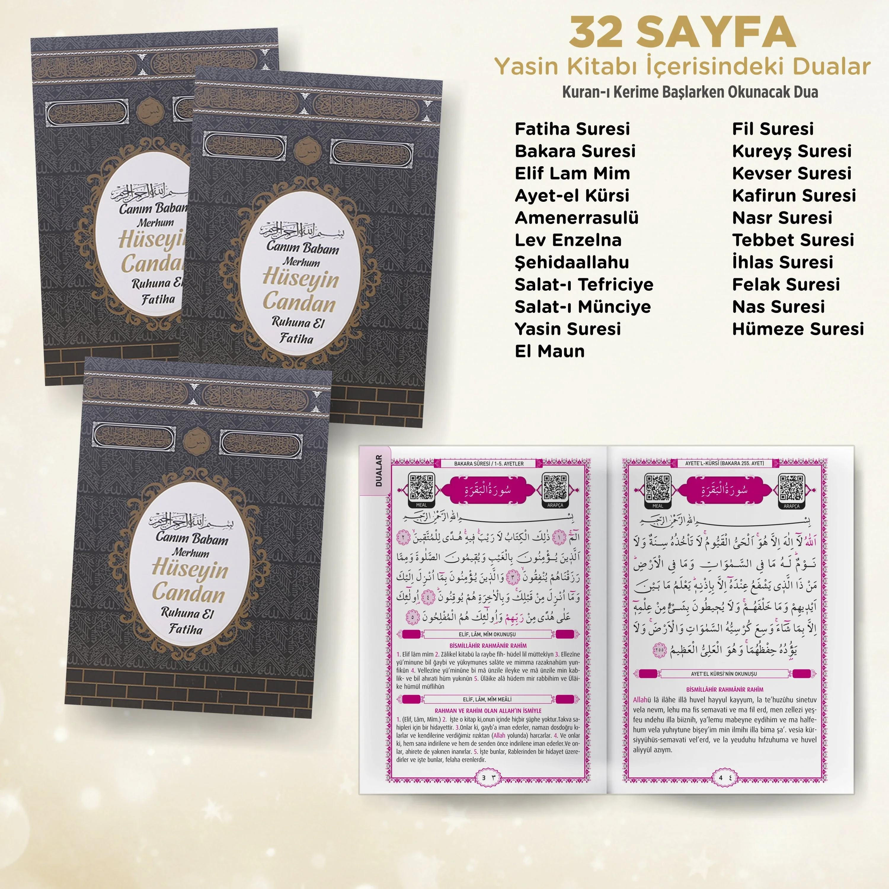 Siparişinizi oluştururken lütfen "isme özel metin" alanını doldurunuz. Yasin Kitabı istediğiniz metin ile kişiselleştirilebilir.