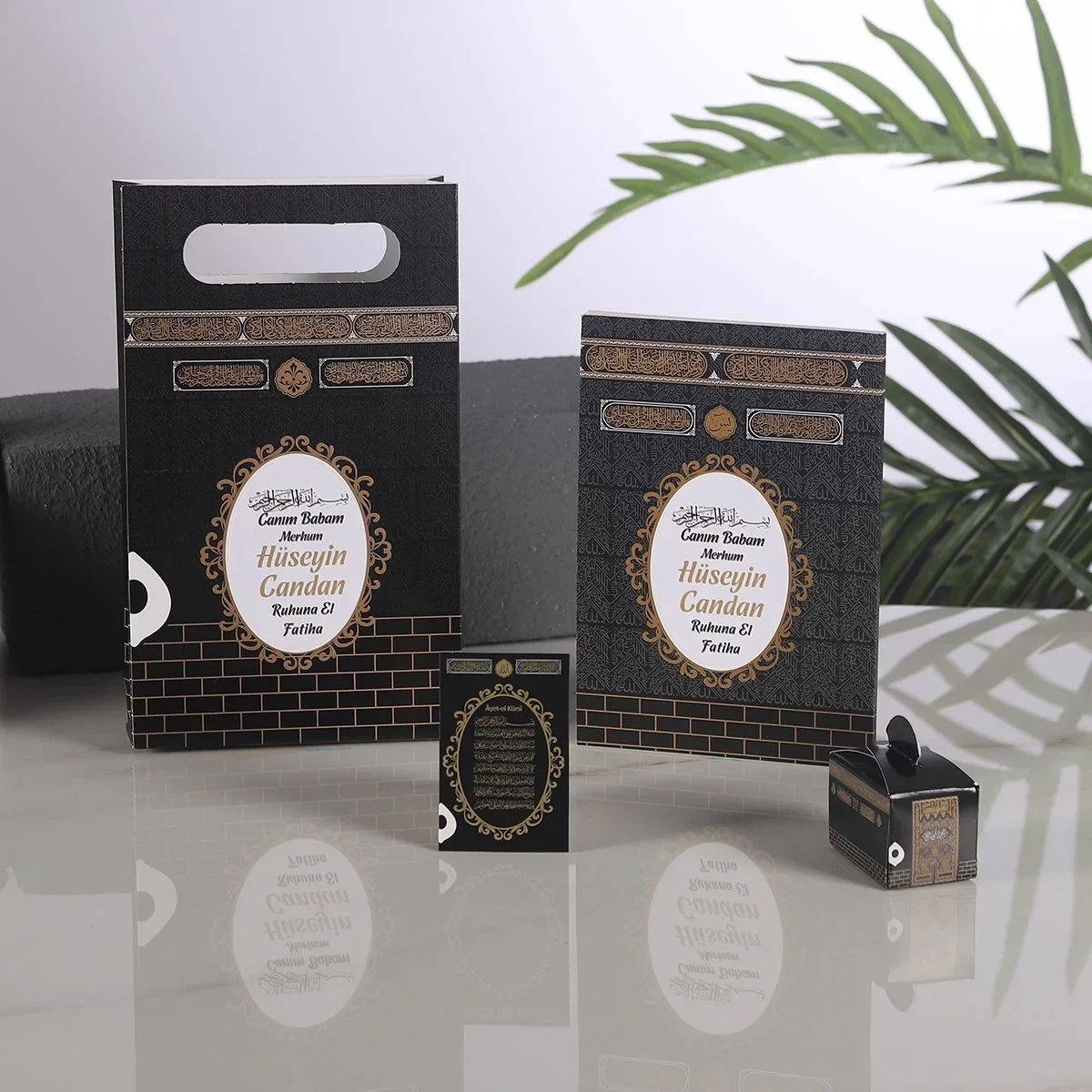 Kabe Model Siyah Renkli Yasin Kitabı, Lokum Kutusu, Magnet ve Karton Çanta - Mevlüt Hediyelikleri