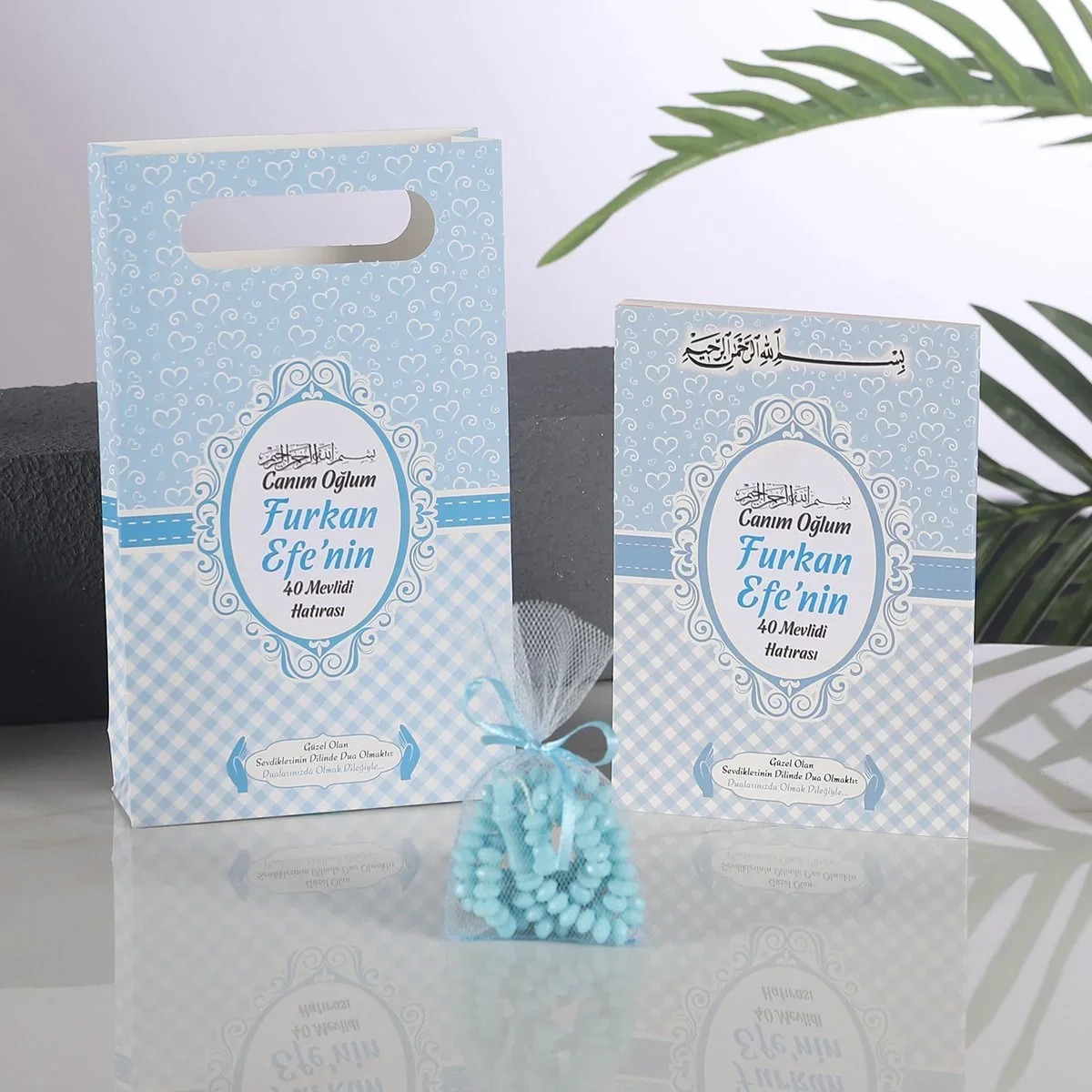 Özellikle Erkek Bebek Mevlütleri için uygun olan Kalp Model Mavi Renkli Yasin Kitabı, Karton Çanta ve Tesbih Seti, yeni doğan bebekleri olan aileler tarafından sıkça tercih edilir. Set içeriğindeki özel dua ile birlikte, sevdiklerinizin dualarını anlam dolu bir ritüel haline getirmelerine yardımcı olur.