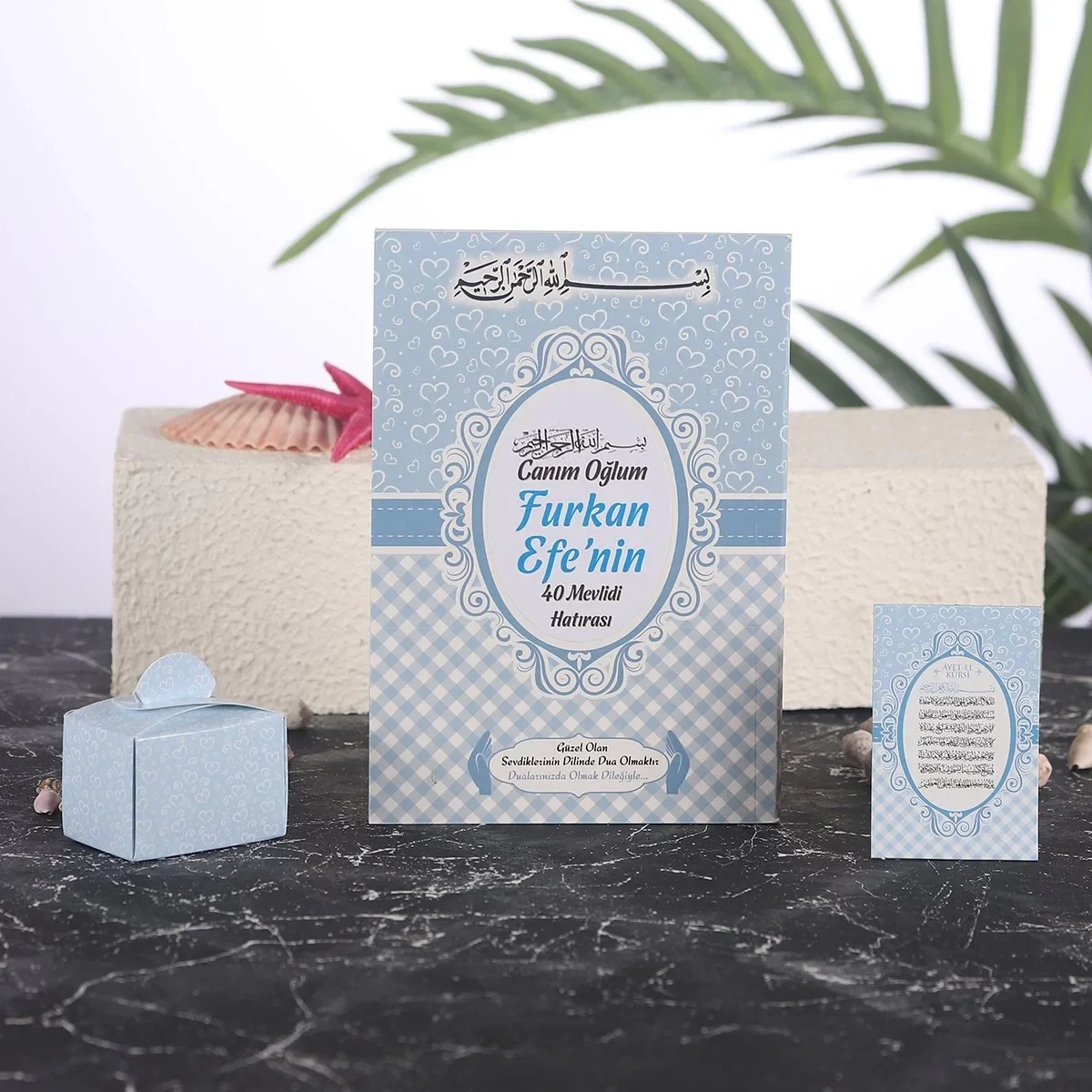 Erkek Bebek Mevlütleri için özel olarak tasarlanan bu set, yeni doğan bebekleri olan aileler tarafından sıkça tercih edilir. Kalp Model Mavi Renkli Yasin Kitabı, Lokum Kutusu ve Magnet içindeki her bir öğe, içeriğindeki anlam dolu dualar ve özel detaylar ile öne çıkar.