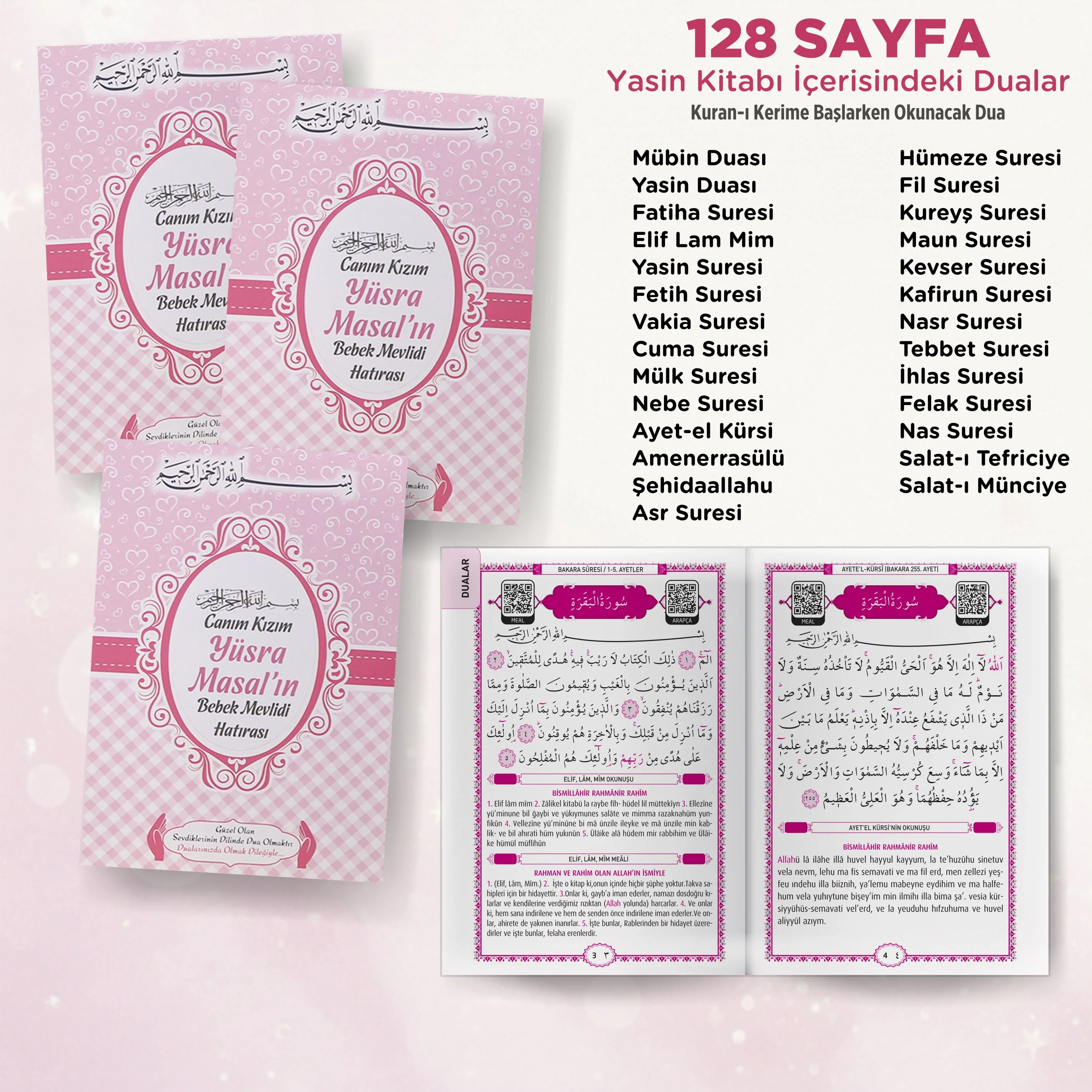 Kalp Model Pembe Renkli Yasin Kitabı Seti, bebek mevlütleri veya özel günlerde sevdiklerinize duygusal bir dokunuş yapmak için ideal bir seçenektir. Zarif tasarımıyla bu set, sevgi ve saygı dolu bir hediye olarak öne çıkar.