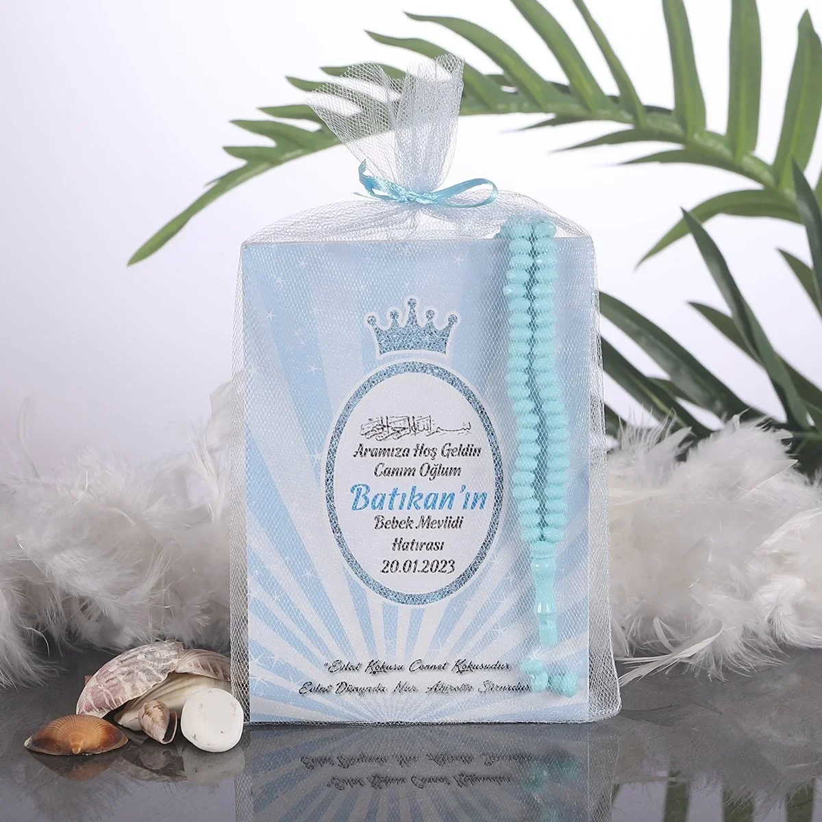 Erkek Bebek Mevlütleri, Sünnet Mevlütleri ve benzeri dini ritüellerde dağıtılmak üzere özel olarak hazırlanan bu set, içerisindeki Taç Model Mavi Renkli Yasin Kitabı ve Tesbih ile sevdiklerinizin dua anlarını daha özel kılar. Tül kese, seti zarif bir şekilde sunmanıza yardımcı olur.