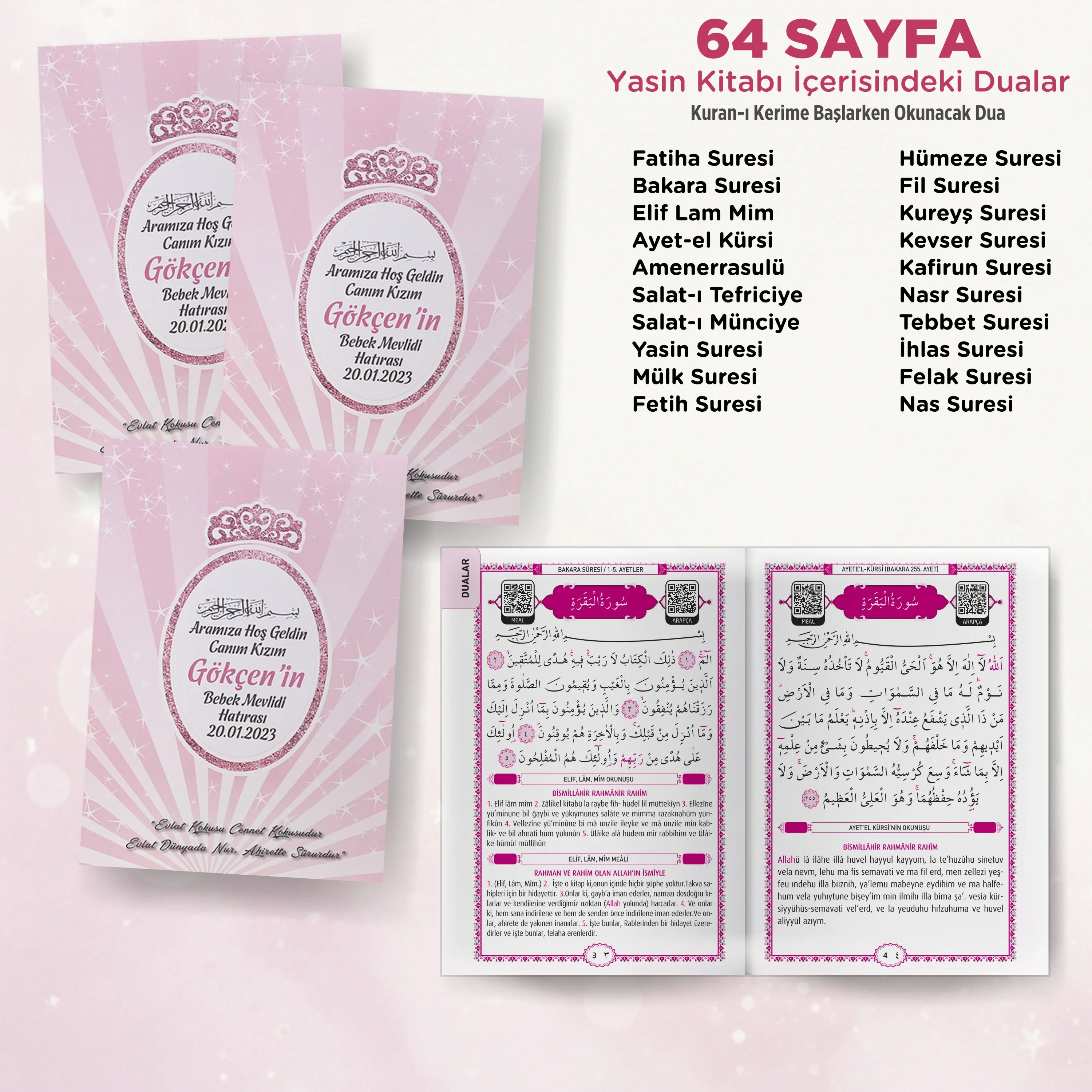 Taç Model Pembe Renkli Yasin Kitabı, Lokum Kutusu, Magnet ve Karton Çanta - Mevlüt Hediyelikleri