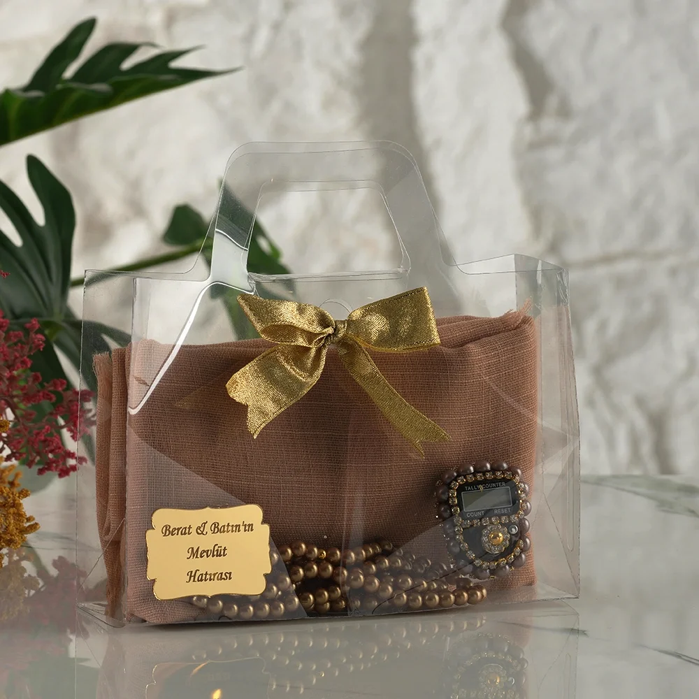 Goldın asaletiyle hazırlanan bu özel set; şeffaf asetat çantası ve kurdele süslemesiyle davetlilerinize özenle hazırlanmış bir sunum yapmanızı sağlar. Üzerine eklenen isme özel pleksi ile merhumun, bebeğinizin veya özel gün sahibinin adını hatıralarda yaşatabilirsiniz.