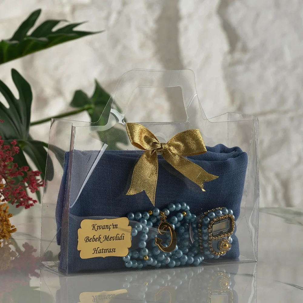 Maviın asaletiyle hazırlanan bu özel set; şeffaf asetat çantası ve kurdele süslemesiyle davetlilerinize özenle hazırlanmış bir sunum yapmanızı sağlar. Üzerine eklenen isme özel pleksi ile merhumun, bebeğinizin veya özel gün sahibinin adını hatıralarda yaşatabilirsiniz.