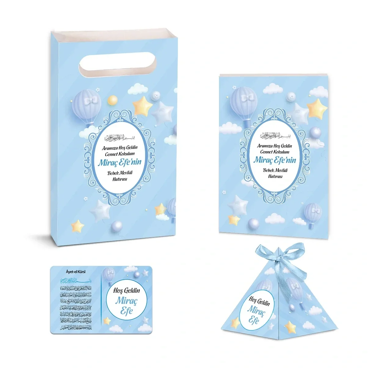 Balon Model Mavi Renkli Yasin Kitabı, Piramit Külah, Ayet-el Kürsi Magnet, Karton Çanta - Mevlüt Hediyelikleri