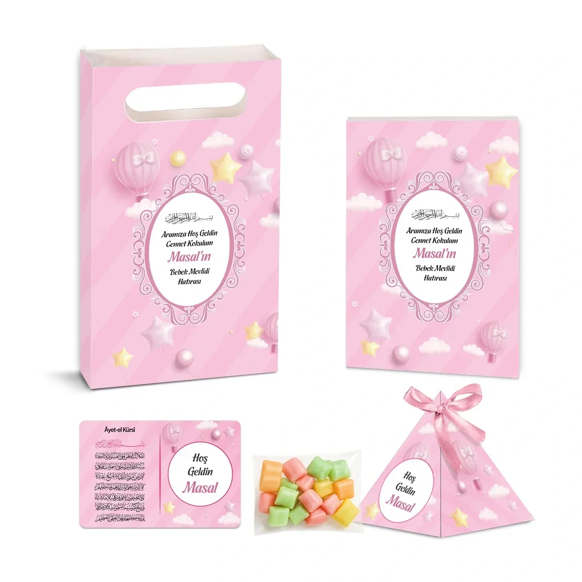 Balon Model Pembe Renkli Yasin Kitabı, Piramit Külah, Mevlüt Şekeri, Ayet-el Kürsi Magnet, Karton Çanta - Mevlüt Hediyelikleri