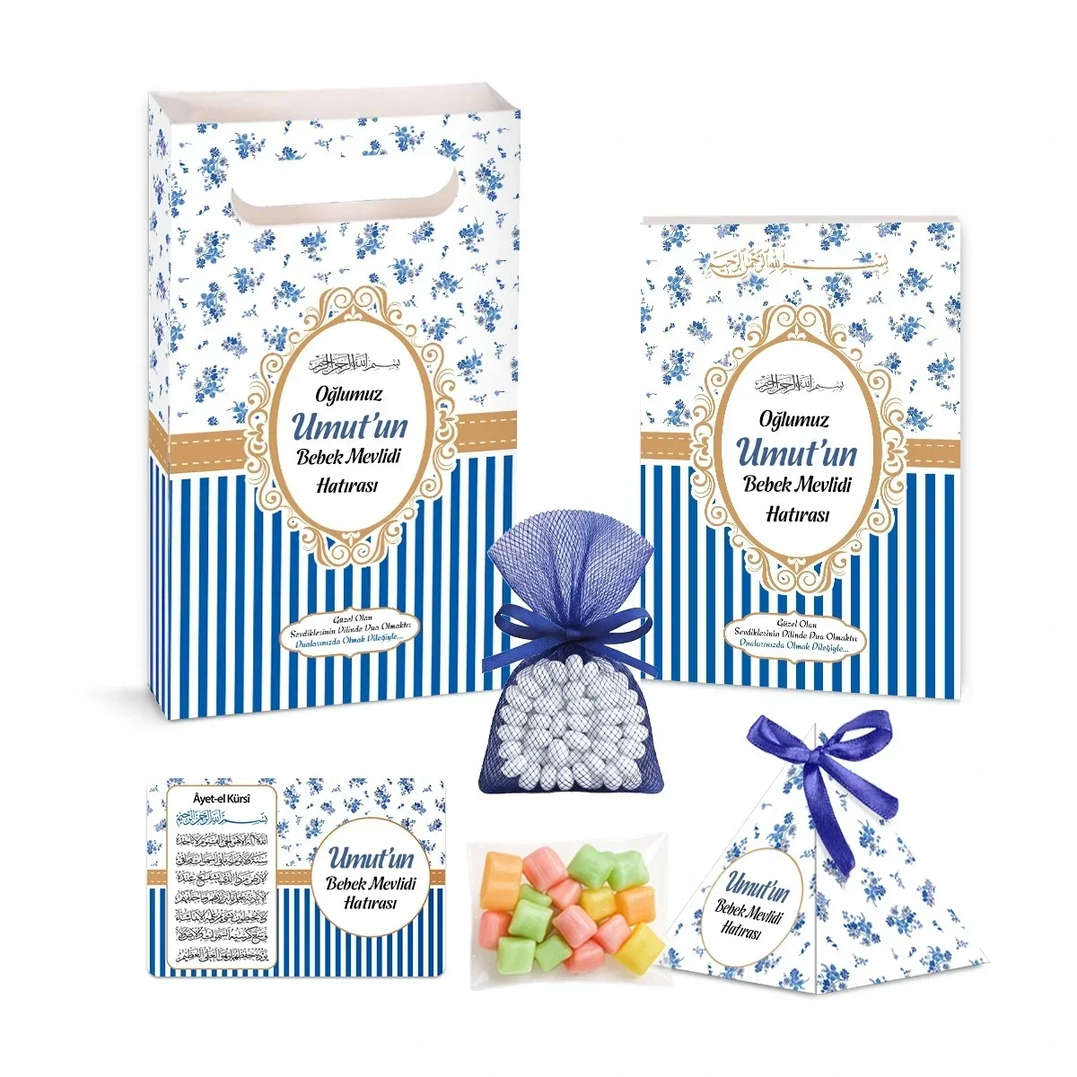 Çizgi Model Lacivert Renkli Yasin Kitabı, Piramit Külahı, Mevlüt Şekeri, Ayet-el Kürsi Magneti Karton Çanta ve Tesbih ile mevlütlerinizde en şık ve kaliteli mevlüt hediyelikleri dağıtın. Aynı gün kargo imkanı, kapıda ödeme seçeneği, ücretsiz iade ve değişim kolaylığı.