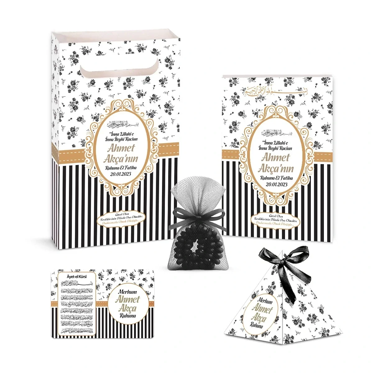 Çizgi Model Siyah Renkli Yasin Kitabı, Piramit Külah, Ayet-el Kürsi Magnet, Karton Çanta ve Tesbih - Mevlüt Hediyelikleri