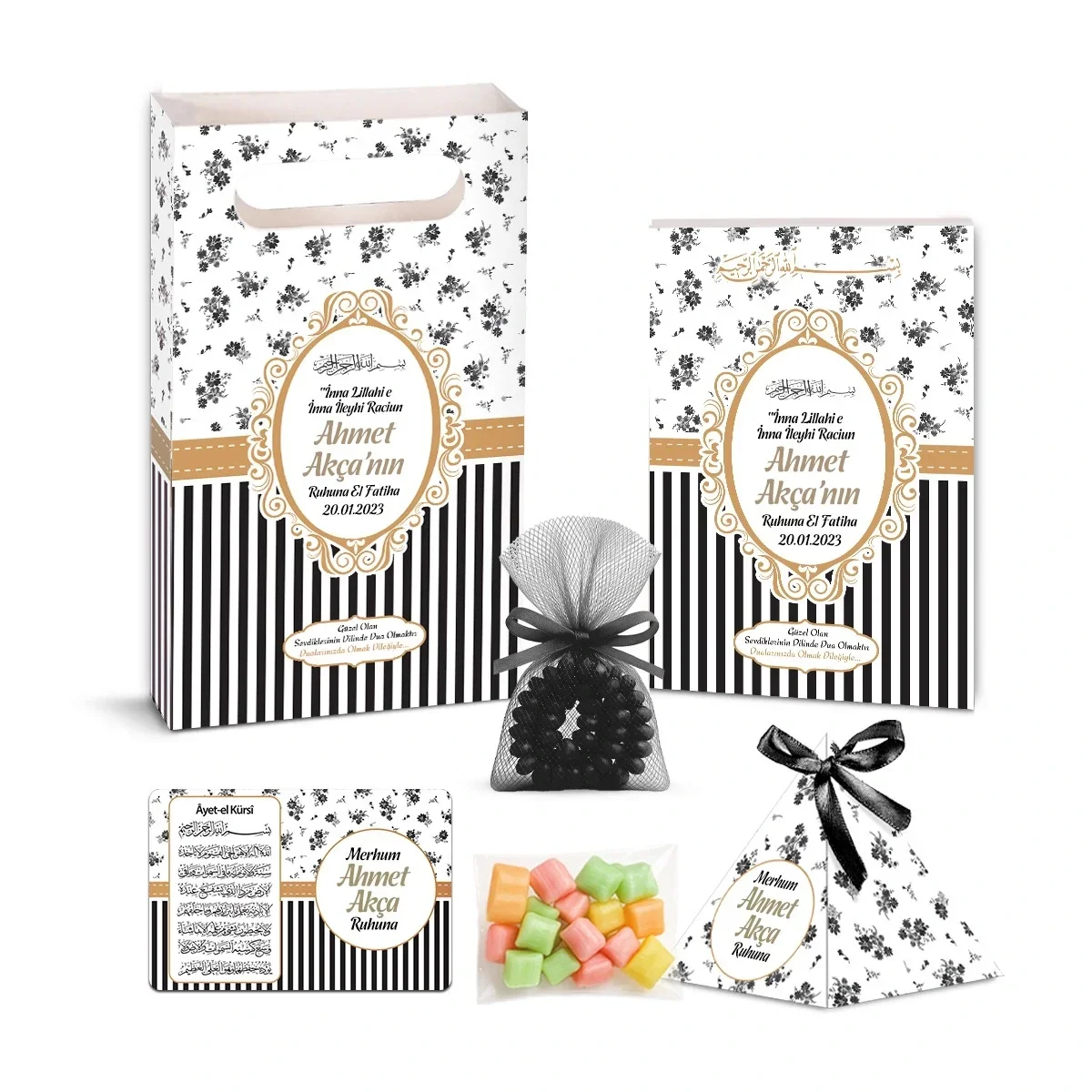 Çizgi Model Siyah Renkli Yasin Kitabı, Piramit Külahı, Mevlüt Şekeri, Ayet-el Kürsi Magneti Karton Çanta ve Tesbih ile mevlütlerinizde en şık ve kaliteli mevlüt hediyelikleri dağıtın. Aynı gün kargo imkanı, kapıda ödeme seçeneği, ücretsiz iade ve değişim kolaylığı.