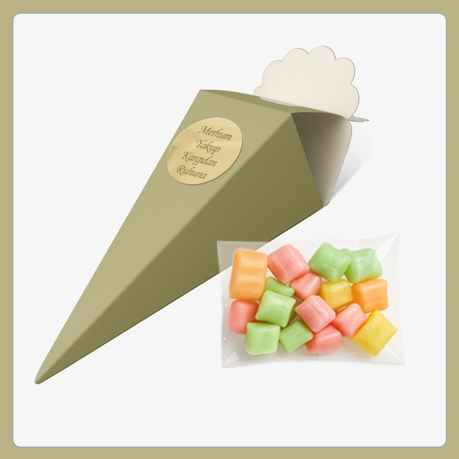 Gold Renkli İsme Özel Külah İçerisinde Mevlüt Şekeri