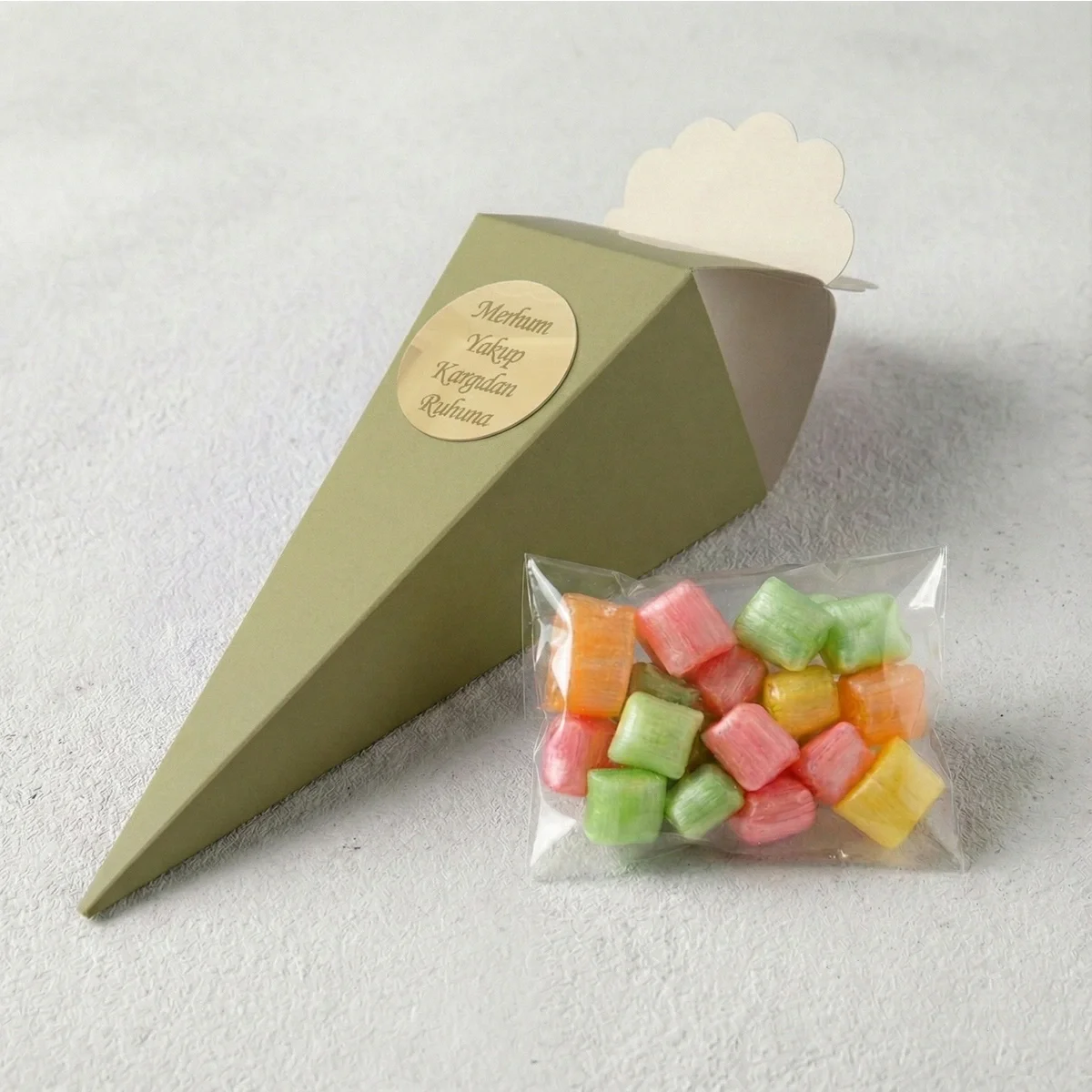 • Gold renkli külah içinde, isme özel pleksi detaylı mevlüt şekeri. Misafirlerinize zarif ve unutulmaz bir ikram sunmak için idealdir.