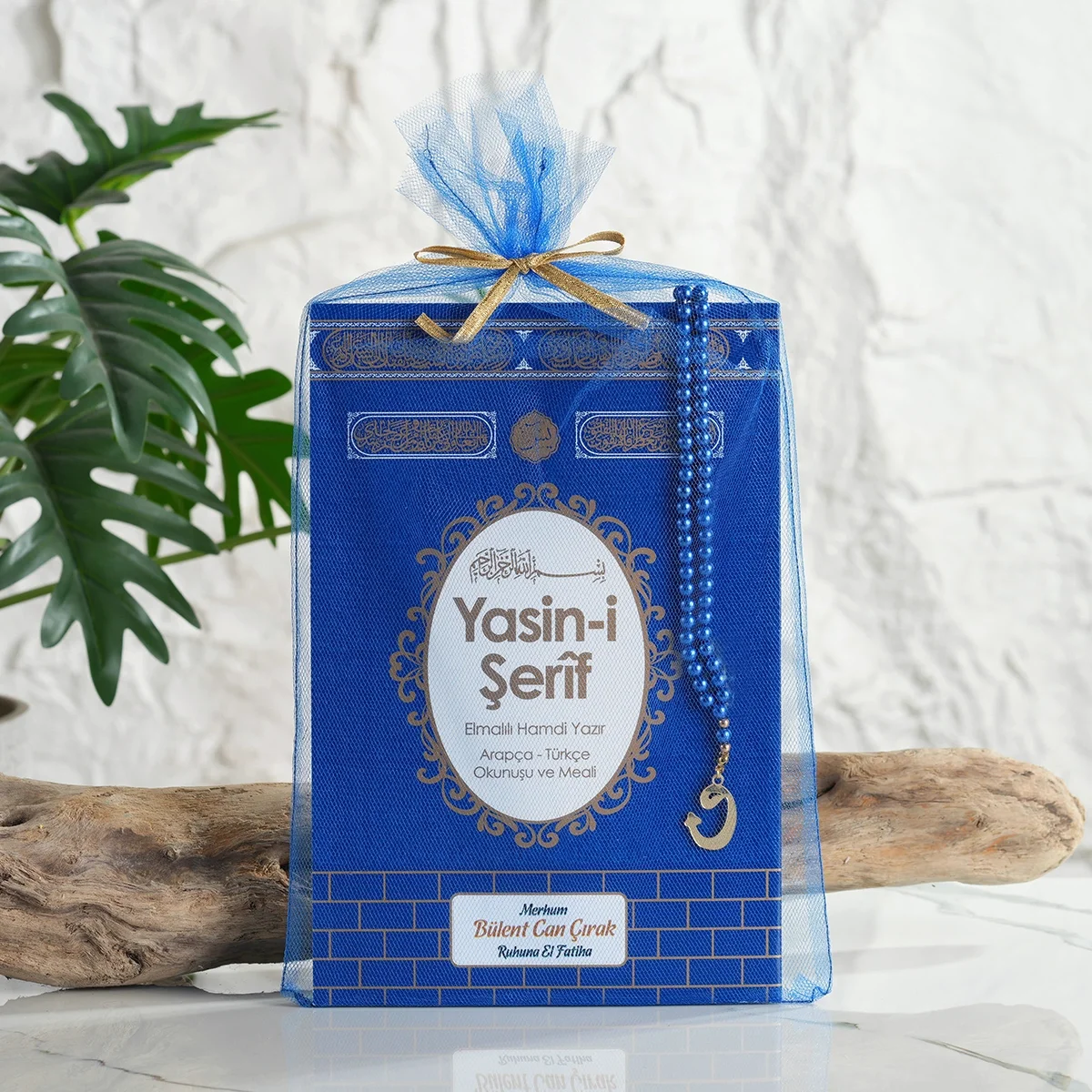 Orta Boy Kabe Model Saks Mavisi Renkli Tül Kese İçerisinde Yasin Kitabı ve Tesbih Setimizle İlgili Bilmeniz Gerekenler
