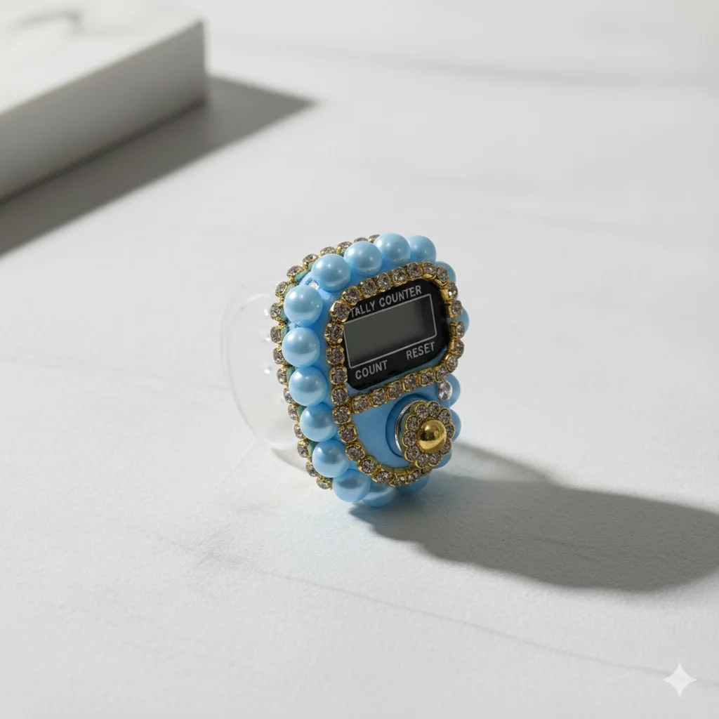 Mavi Taşlı Zikirmatik, zarif taş süslemeleriyle tasarlanmış şık ve kullanışlı bir dijital tesbih sayacıdır. Parlak Mavi rengiyle dikkat çeker ve tesbihat sırasında kolay kullanım sağlar. Dijital ekranı sayesinde sayaç kolaylıkla sıfırlanabilir ve yüksek hassasiyetle sayım yapar. Hafif, ergonomik ve sessiz çalışır.