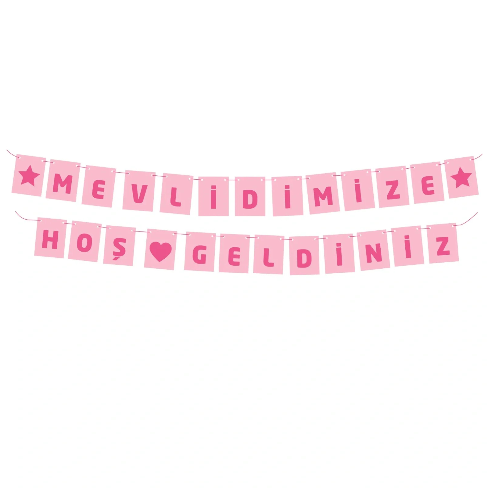 Pastel pembe renklerde tasarlanan bu banner, bebek mevlüdü ve özel karşılama organizasyonları için zarif ve neşeli bir dekor sunar. Üzerindeki “Mevlidimize Hoş Geldiniz” yazısı sayesinde misafirlerinizi sıcak bir atmosferle karşılamak çok kolay.
