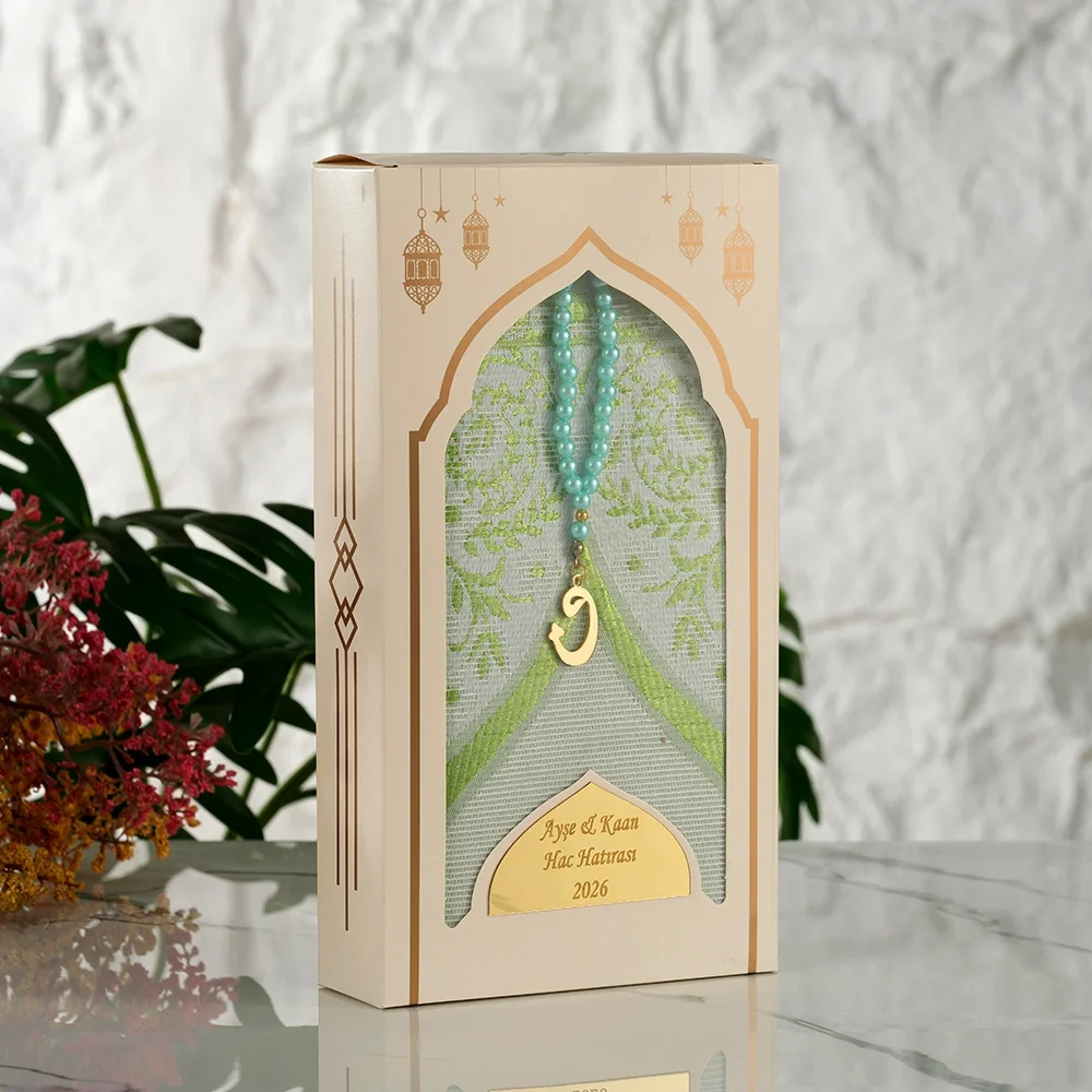 Sadeliğin ve asaletin rengi Su Yeşili ile tasarlanan bu özel set, manevi günlerinizde misafirlerinize sunabileceğiniz en zarif hediyeliklerden biridir. Dikey Kutulu Su Yeşili Seccade Seti, özel pencereli kutu tasarımı sayesinde içerisindeki seccade ve tesbihi şık bir şekilde sergiler.