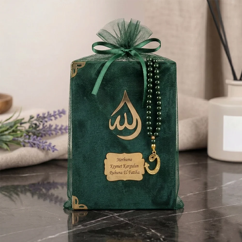 Tül Kese İçerisinde İnci Tesbihli Zümrüt Renkli BabyFace Yasin Kitabı Seti - Mevlüt Hediyelikleri