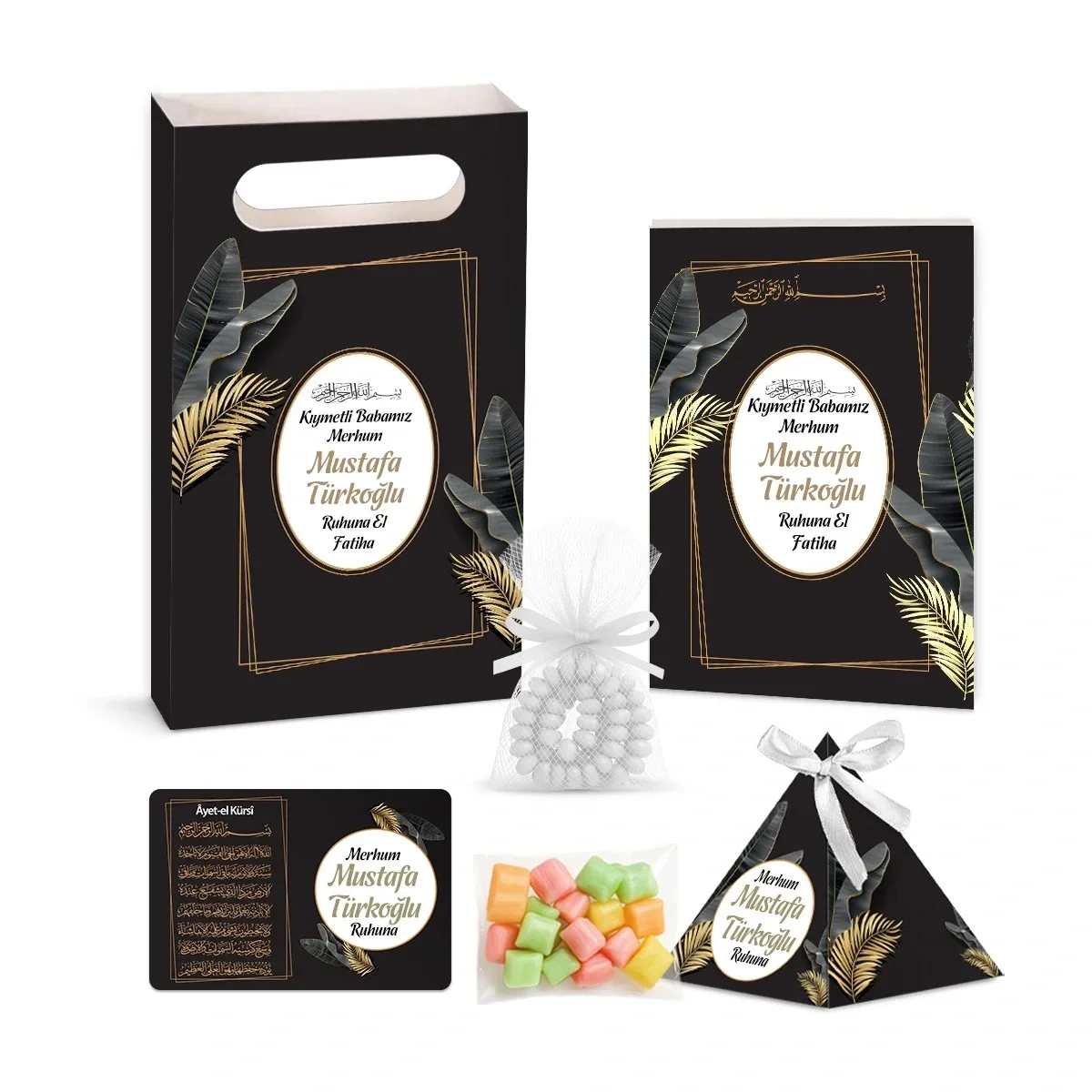 Zerafet Model Siyah Renkli Yasin Kitabı, Piramit Külah, Mevlüt Şekeri, Ayet-el Kürsi Magnet, Karton Çanta ve Tesbih - Mevlüt Hediyelikleri