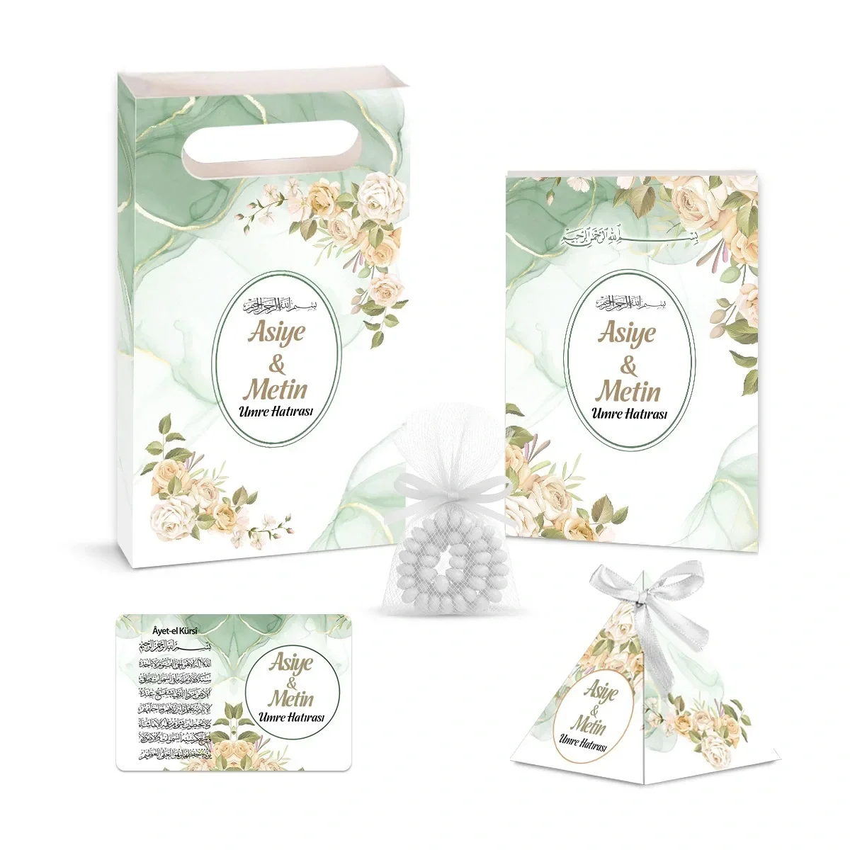 Zerafet Model Yeşil Renkli Yasin Kitabı, Piramit Külah, Ayet-el Kürsi Magnet, Karton Çanta ve Tesbih - Mevlüt Hediyelikleri
